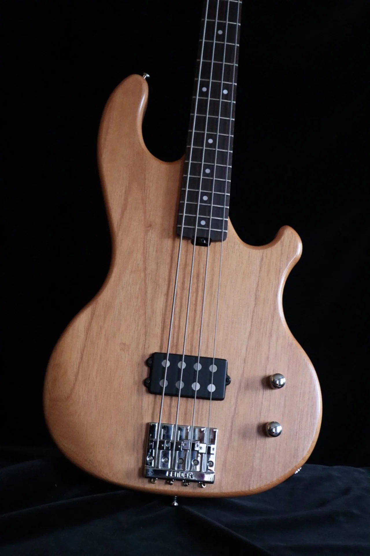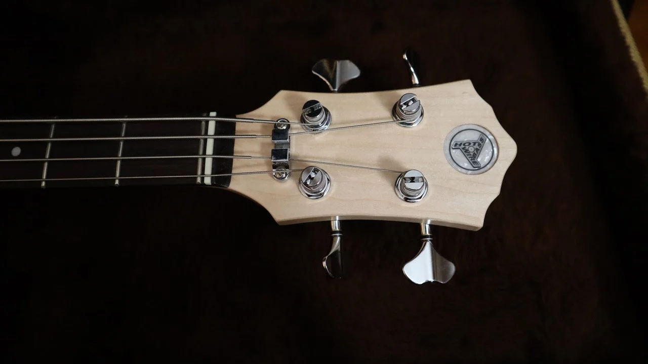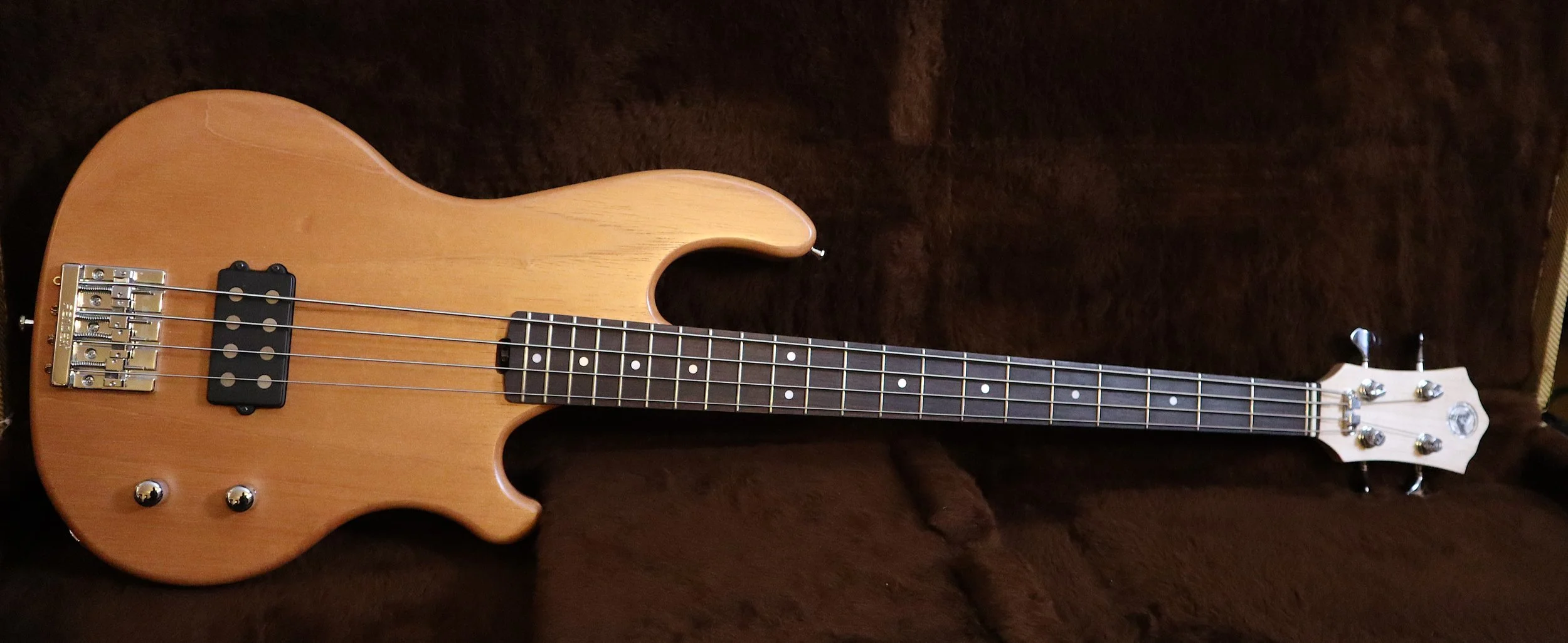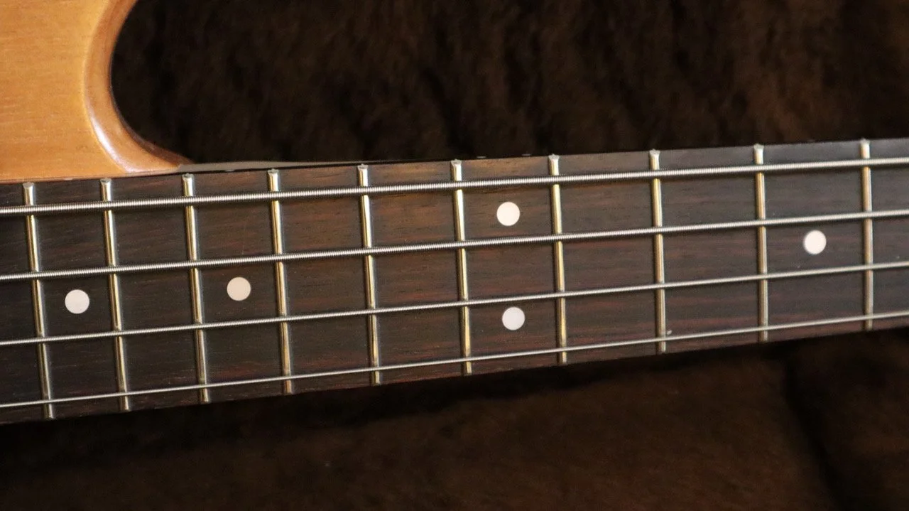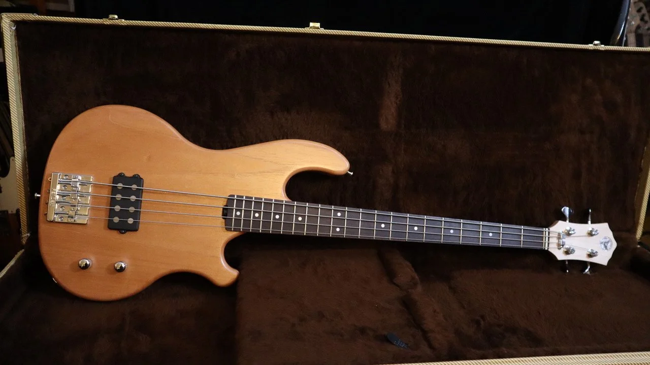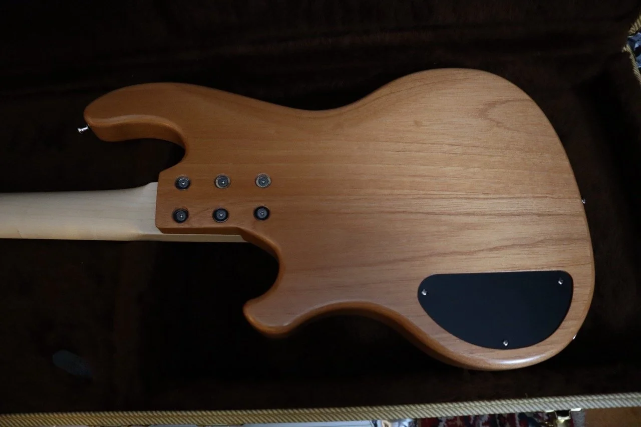 Ich schlug einen Inlaw-Korpus aus Cedro, einer Mahagoni-Art, in matter Naturlackierung und einen Ahornhals mit einem Griffbrett aus indischem Palisander vor. Er bevorzugte unseren MM-Tonabnehmer, aber keine aktive Elektronik. Außerdem gefiel ihm die Kopfplatte unseres Blues Bass sehr gut.