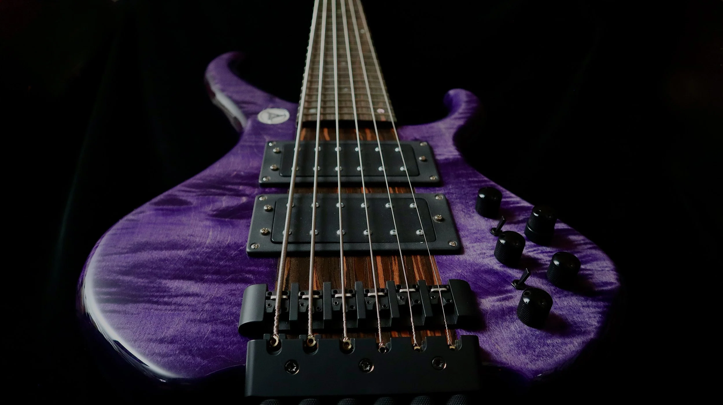 The multistrip neck features hornbeam in the middle, flanked by strips of bubinga and maple. The fingerboard is made of compressed ebony and has 24 jumbo frets (2.7 mm).