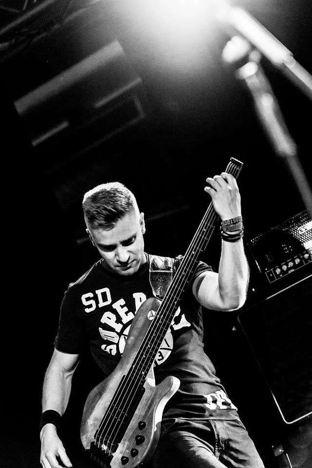 Simon uses Aguilar amps, Elixir strings and Vovox cables.