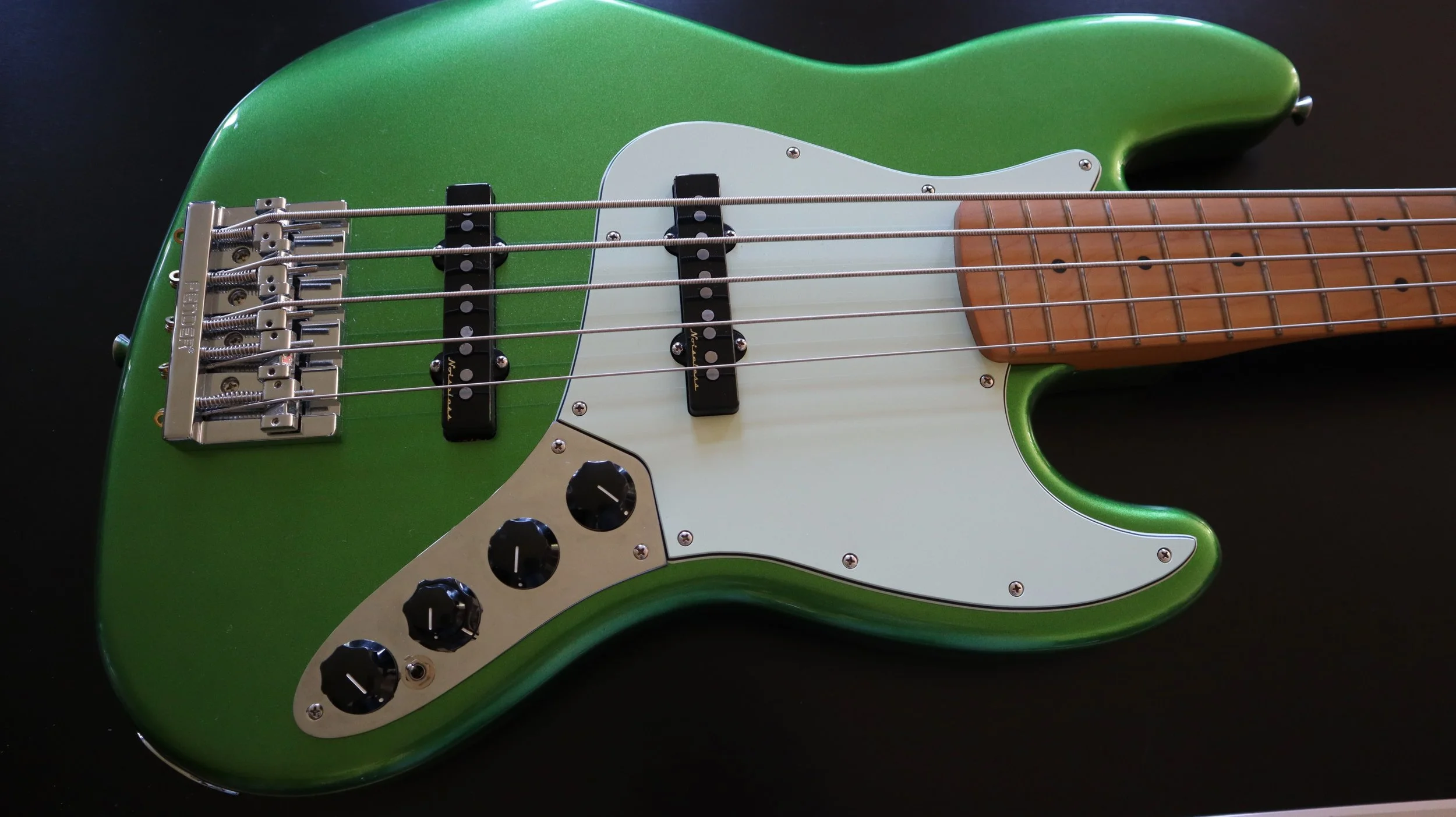 Dieser Fender Player Jazz Made in Mexico ist Baujahr 2023, kaum gespielt, hat eine aktive Elektronik drin. Wir haben ihm eine Gitarrenbauer-Bundbearbeitung und neue Pyramid Saiten gegönnt. Alles original, keine Spielspuren, umständehalber für 1200 Euronen in liebevolle Hände abzugeben. Ach ja: ein Gigbag ist auch dabei.